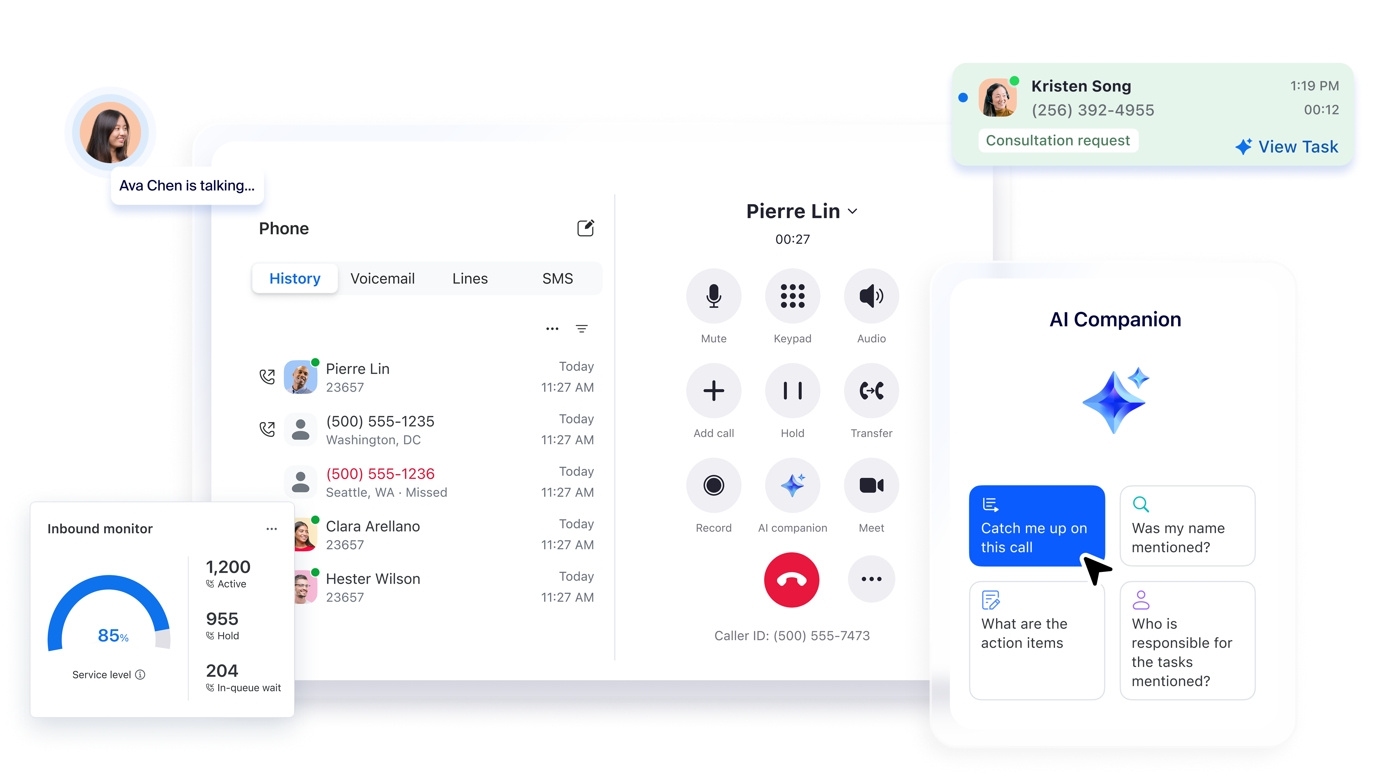 - Edistyneet puhelutoiminnot kuten puhelunsiirrot, soittojono, puheluiden tallennus ja analytiikka.
